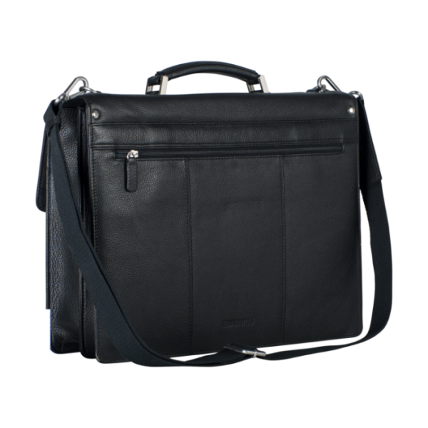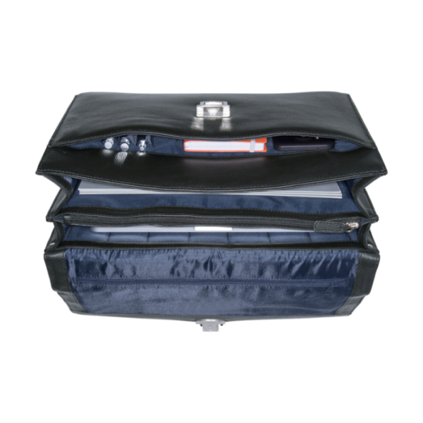 Die hochwertige Aktenmappe der Serie Berlin überzeugt durch ihre funktionale Organisation und robuste Verarbeitung. In den beiden großzügigen Hauptfächern finden Dokumente, Laptop, Tablet sowie weitere Arbeitsutensilien optimalen Platz. Das gemilltem Vollrindleder und das schlichte Design der Aktenmappe in Schwarz machen sie zum zuverlässigen Begleiter für anspruchsvolle Berufsalltage.