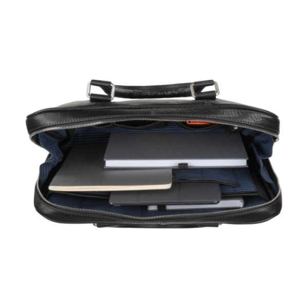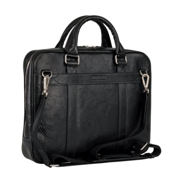 Die hochwertige Aktentasche aus feinstem italienischem Vollrindleder ist perfekt geeignet für den klassischen und eleganten Businessauftritt. Dank der tollen Ausstattung lassen sich Laptop oder Tablet, zahlreiche Stifte und Dokumente im DIN A4 Format bequem unterbringen. So sind die wichtigsten Unterlagen gut sortiert und immer griffbereit. Der Umhängegurt lässt sich individuell an die Größe anpassen und sorgt immer für ein angenehmes Tragegefühl. Die hochwertige Aktenmappe in Schwarz ist der ideale Begleiter für Ihren Business-Alltag.