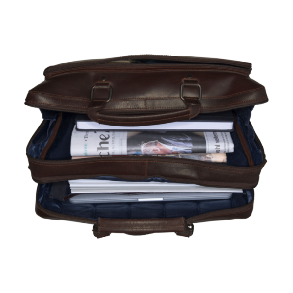 Auf die hochwertige Aktenmappe der Serie Dakota können Sie sich verlassen! In den beiden Hauptfächern mit großzügigem Platz lassen sich zahlreiche Dokumente, Laptop oder Tablet sowie weitere Arbeitsutensilien bequem unterbringen. Neben dem Tragegriff gibt es einen Schultergurt, der für ein angenehmes Tragegefühl sorgt. Das robuste Rindsleder und das klare Design der Aktenmappe in Braun machen sie zum idealen Begleiter für den Berufsalltag.