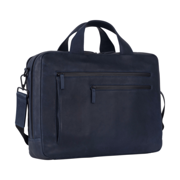 Sie suchen eine geräumige Aktenmappe aus robustem Leder? Dann ist diese Tasche aus der Serie Den Haag genau die Richtige für Sie. Die zeitlose Aktenmappe aus weichem Vollrindleder mit Nubuk-Touch bietet ausreichend Platz, um in den zwei großen Fächern Laptop, Tablet, Dokumente und zahlreiche Arbeitsutensilien bequem unterzubringen. Die stabilen Henkel der Tragetasche verleihen zusätzlichen Tragekomfort und machen die Aktenmappe in Blau zum idealen Begleiter für den Berufsalltag.
