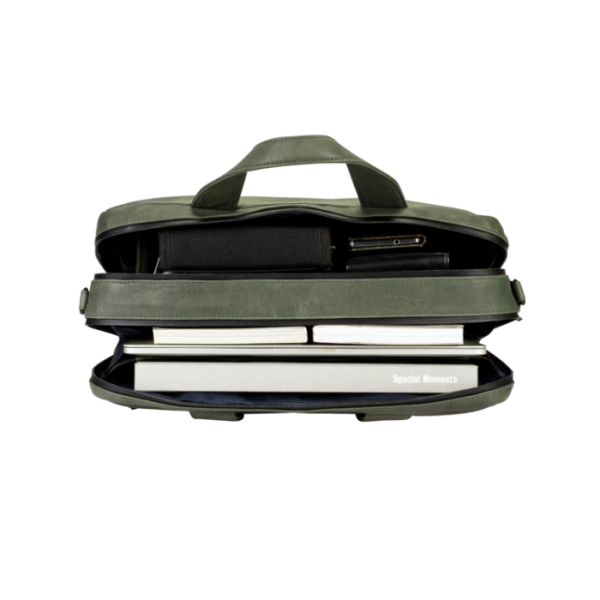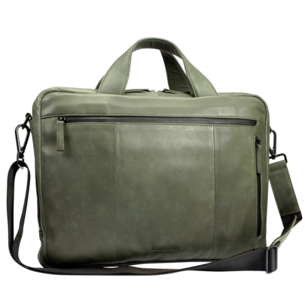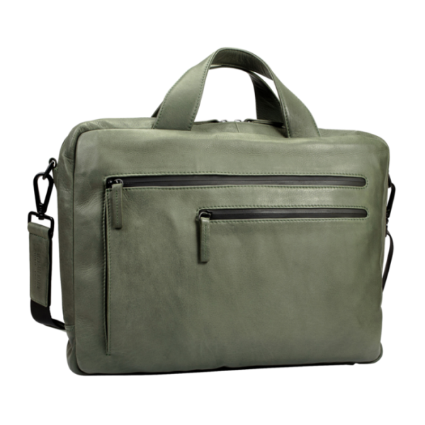 Sie suchen eine geräumige Aktenmappe aus robustem Leder? Dann ist diese Tasche aus der Serie Den Haag genau die Richtige für Sie. Die zeitlose Aktenmappe aus weichem Vollrindleder mit Nubuk-Touch bietet ausreichend Platz, um in den zwei großen Fächern Laptop, Tablet, Dokumente und zahlreiche Arbeitsutensilien bequem unterzubringen. Die stabilen Henkel der Tragetasche verleihen zusätzlichen Tragekomfort und machen die Aktenmappe in Oliv zum idealen Begleiter für den Berufsalltag.