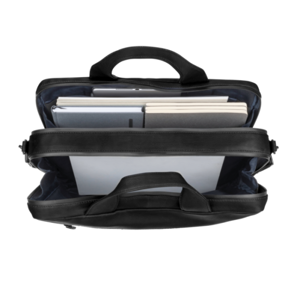 Sie suchen eine geräumige Aktenmappe aus robustem Leder? Dann ist diese Tasche aus der Serie Den Haag genau die Richtige für Sie. Die zeitlose Aktenmappe aus weichem Vollrindleder mit Nubuk-Touch bietet ausreichend Platz, um in den zwei großen Fächern Laptop, Tablet, Dokumente und zahlreiche Arbeitsutensilien bequem unterzubringen. Die stabilen Henkel der Tragetasche verleihen zusätzlichen Tragekomfort und machen die Aktenmappe in Schwarz zum idealen Begleiter für den Berufsalltag.