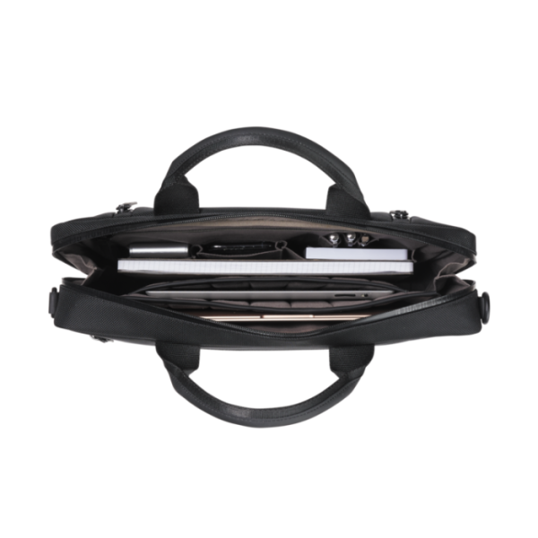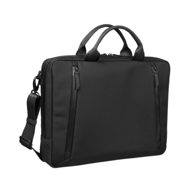 Selbstverständlich überzeugt die erstklassig verarbeitete Aktenmappe aus 100% recyceltem Nylon nicht nur mit einer tollen Optik, sondern bietet auch eine Menge Stauraum. Neben Dokumenten im DIN A4 Format und wichtigen Unterlagen können Sie im gepolsterten Extrafach Laptop und Tablet bequem unterbringen. Der Umhängegurt lässt sich individuell an die Größe anpassen und sorgt immer für ein angenehmes Tragegefühl. Dank des schlichten Designs sieht die Aktenmappe in Schwarz nicht nur äußerst gut aus, sondern passt zu jedem Outfit.