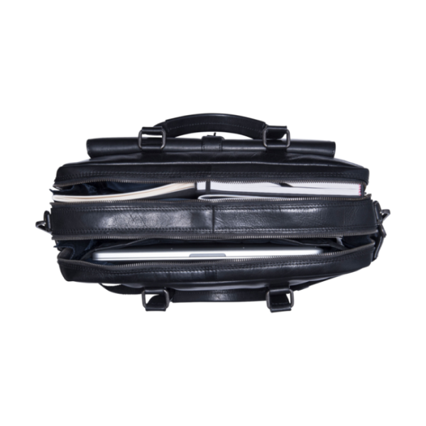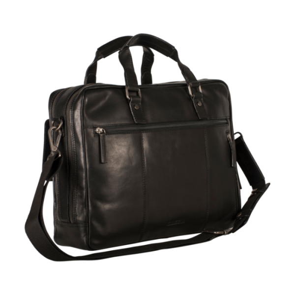 Sie suchen eine geräumige Aktenmappe aus robustem Leder? Dann ist diese Tasche aus der Serie Roma genau die Richtige für Sie. Die zeitlose Aktenmappe aus bestem Pull-Up-Leder mit fein schimmerndem Two-Tone-Effekt bietet ausreichend Platz, um in den zwei großen Fächern Laptop, Tablet, Dokumente und zahlreiche Arbeitsutensilien bequem unterzubringen. Besonders praktisch: in der großen Vortasche lassen sich u.a. auch Smartphone, Ladekabel und weitere wichtige Essentials griffbereit verstauen. Die stabilen Henkel der Tragetasche verleihen zusätzlichen Tragekomfort und machen die Aktenmappe in Schwarz zum idealen Begleiter für den Berufsalltag.
