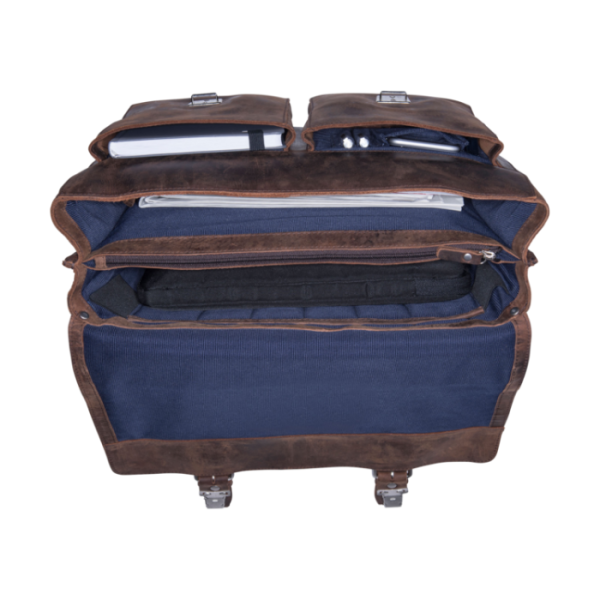 Die Aktenmappe aus edlem Vollrindleder ist perfekt geeignet für den klassischen und eleganten Businessauftritt. In den zwei Hauptfächern lassen sich zahlreiche Dokumente, Laptop und Tablet bequem unterbringen. In den zwei Vordertaschen ist genügend Platz für weitere Arbeitsutensilien. Diese stilvolle Tasche lässt sich formell in der Hand oder dank des abnehmbaren Gurts bequem über die Schulter tragen – die Aktenmappe in Braun ist der perfekte Begleiter für Ihren Office-Alltag.