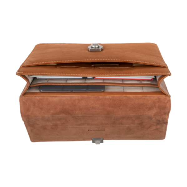 Die hochwertige Aktenmappe aus weichem Vollrindleder überzeugt durch ihre durchdachte Organisation und langlebige Verarbeitung. Alle wichtigen Unterlagen bleiben perfekt sortiert und stets griffbereit. In den strukturierten Innenfächern finden sowohl ein Laptop als auch umfangreiche A4-Dokumente optimal Platz. Die solide verarbeitete Aktenmappe in Hellbraun ergänzt sowohl klassische Business-Outfits als auch moderne Business-Casual-Kombinationen ideal.