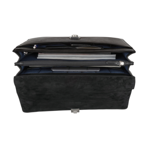 Die hochwertige Aktenmappe der Serie Bergamo überzeugt durch herausragende Verarbeitung und langlebige Qualität! In den beiden großzügigen Fächern mit optimaler Organisation finden Dokumente, Laptop, Tablet sowie weitere Arbeitsutensilien perfekten Platz. Das edle Vollrindleder und das schlichte Design der Aktenmappe in Schwarz machen sie zum zuverlässigen Begleiter für anspruchsvolle Berufsalltage.