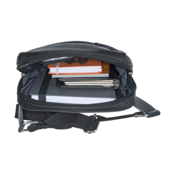 Die durchdachte Umhängetasche aus gemilltem Vollrindleder überzeugt durch ihre praktische Kompaktheit als zuverlässiger Begleiter für Business und Freizeit. In den intelligent angeordneten Fächern im Innen- und Außenbereich organisieren Sie alle wichtigen Utensilien stets übersichtlich und schnell greifbar. Der verstellbare Umhängegurt ermöglicht eine individuelle Anpassung an Ihre Körpergröße und gewährleistet optimalen Tragekomfort. Die hochwertig verarbeitete Umhängetasche in klassischem Schwarz vereint funktionales Design mit langlebiger Qualität für den anspruchsvollen Alltagseinsatz.