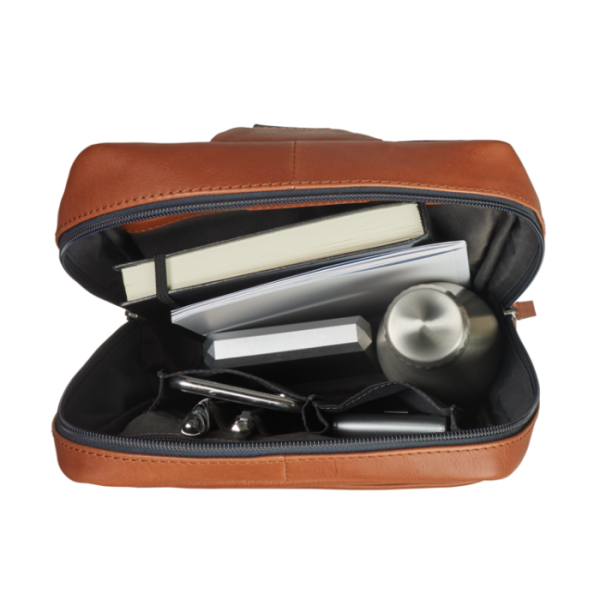 Stilvoll und lässig präsentiert sich diese modische Crossbag der Serie Hamburg. Sie ist leicht und kompakt und für alles geeignet, was Sie im Alltag brauchen. Sie verfügt über ein großes Innenfach in dem auch genügenden Platz für ein Tablet ist. Im Reißverschlussfach auf der Vorderseite können Sie kleinere Dinge sicher verstauen. Dank des hochwertigen Vollrindleders sieht die cognacfarbene Crossbag nicht nur äußert gut aus, sondern passt zu jedem Outfit. Einfach klasse.