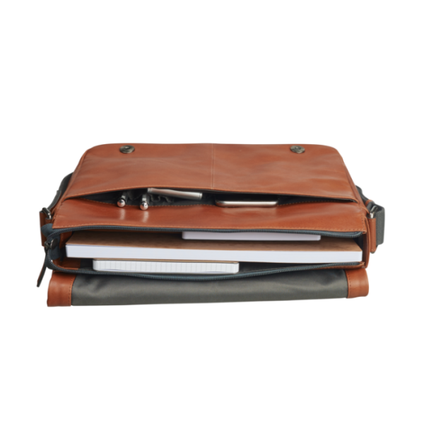 Gefertigt aus weichem, gemilltem Vollrindleder überzeugt die Umhängetasche mit Ihrem sportlichen Design. Im Hauptfach ist ausreichend Platz für Laptop, Dokumente im DIN A4 Format und wichtige Unterlagen. Weiter Essentials wie Stifte, Smartphone und Ladegerät sind im vorderen Fach griffbereit verstaut. Der Schultergurt lässt sich individuell an die Größe anpassen und sorgt für ein angenehmes Tragegefühl. Die hochwertige Umhängetasche in Cognac ist der ideale Begleiter für den Alltag.