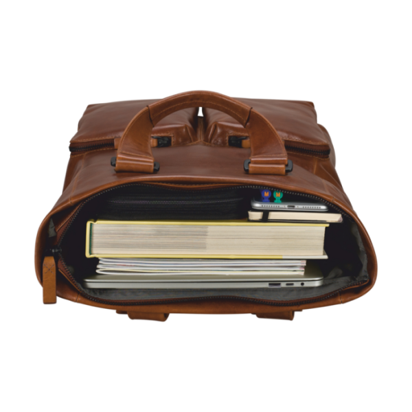 Dieser elegante, braune Tote Bag/Business-Rucksack aus hochwertigen Vollrindleder mit Öl-Wachs Finish vereint Design und Funktionalität. Der Innenraum bietet Platz für ein großes Laptop und ein Tablet sowie Dokumente und andere wichtige Unterlagen. Die kurzen Henkel sorgen dabei für hervorragenden Tragekomfort. Mit diesem Tote Bag / Rucksack in Braun komplettieren Sie stilsicher Ihr Business-Outfit und bringen Eleganz in Ihr tägliches Geschäftsleben.