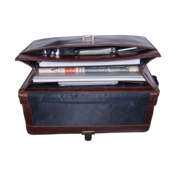 Die hochwertige Cambridge Aktenmappe von Leonhard Heyden bietet professionelle Organisation für Ihren Arbeitsalltag: Das geräumige Hauptfach gewährleistet optimale Übersicht für Laptop, Tablet und wichtige Dokumente. Im vorderen Fach finden Smartphone, Schreibutensilien und Portemonnaie praktisch Platz. Neben dem robusten Tragegriff verfügt die Mappe über einen verstellbaren Schultergurt für ergonomischen Tragekomfort. Die rotbraune Aktenmappe aus echtem Vollrindleder ist der zuverlässige Begleiter für anspruchsvolle Business-Anforderungen.