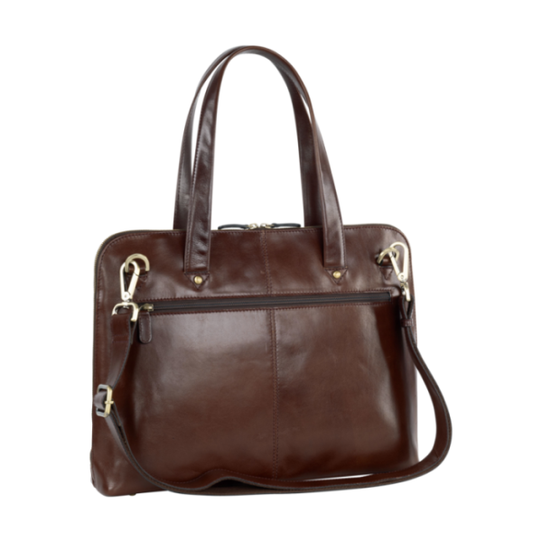 Hochwertige Business-Tasche in zeitlosem Design aus erstklassigem Vollrindleder. Durch die intelligent angeordneten Fächer bietet die Tasche herausragende Organisationseigenschaften. Das geräumige Hauptfach bietet sicheren Transport für Laptop und wichtige Geschäftsunterlagen. In dem strukturierten Außenfach mit mehreren praktischen Innenfächern finden Smartphone, Schreibutensilien und weitere Essentials optimalen Platz. Für anspruchsvolle Büroanforderungen ist die Leonhard Heyden Damen-Businesstasche in Rotbraun ideal konzipiert!
