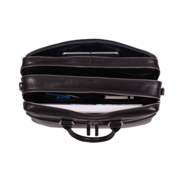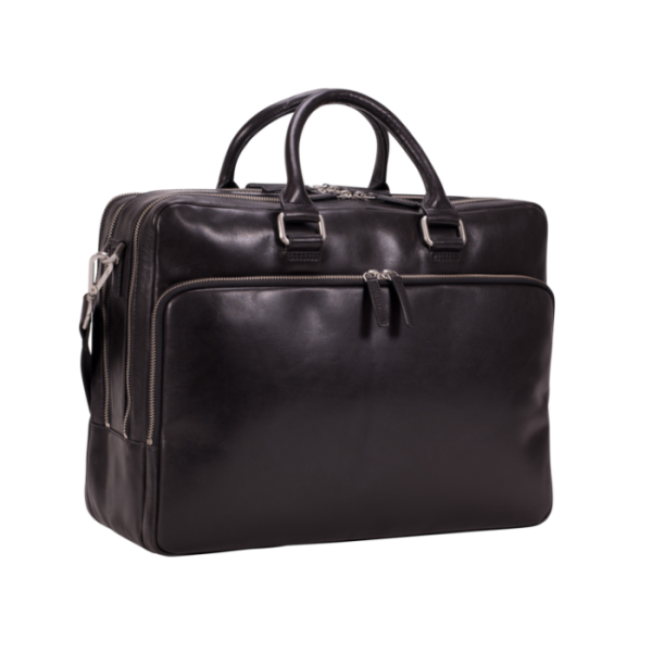 Die hochwertige Aktenmappe der Serie Cambridge bietet optimale Organisation für professionelle Anforderungen: drei großzügige Hauptfächer gewährleisten übersichtlichen Stauraum für Laptop oder Tablet sowie Dokumente und wichtige Arbeitsutensilien. Neben dem robusten Tragegriff verfügt die Mappe über einen verstellbaren Schultergurt für ergonomischen Tragekomfort. Die Leonhard Heyden Aktenmappe in Schwarz vereint funktionale Eleganz mit langlebiger Verarbeitung und passt perfekt zu Business-Formal wie Business-Casual.