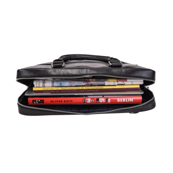 Die hochwertige Leonhard Heyden Aktentasche aus feinem Vollrindleder bietet optimale Organisation für Ihren professionellen Geschäftsauftritt. Durch die durchdachte Aufteilung finden Laptop oder Tablet sowie wichtige Arbeitsunterlagen übersichtlich Platz. Neben dem robusten Tragegriff verfügt die Tasche über einen verstellbaren Schultergurt für ergonomischen Tragekomfort. Die Leonhard Heyden Aktenmappe in Schwarz ist der zuverlässige Begleiter für anspruchsvolle Office-Anforderungen.