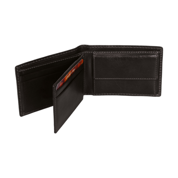 Hochwertiger Gelbeutel in Querformat aus edlem Vollrindleder ist ein idealer Alltagsbegleiter. Neben einem Geldscheinfach und einem praktisches Münzfach verfügt diese Börse auch einige Fächer für Kredit- und Visitenkarten. Das sorgt für Ordnung und schnelle Übersicht. Die edle Scheintasche in Schwarz ist das passende Accessoire für unterwegs.