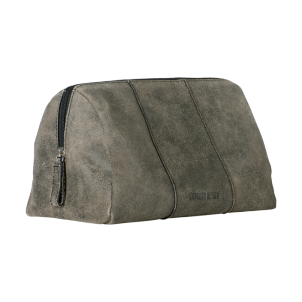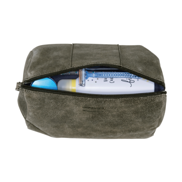 Ob für Wochenenden oder Geschäftsreisen, dieser elegante graue Kulturbeutel aus Vollrindleder ist Ihr idealer Begleiter. Er bietet Platz für Ihre wichtigsten Pflegeprodukte und lässt sich bequem in der Reisetasche verstauen. Ein großartiges platzsparendes Feature!