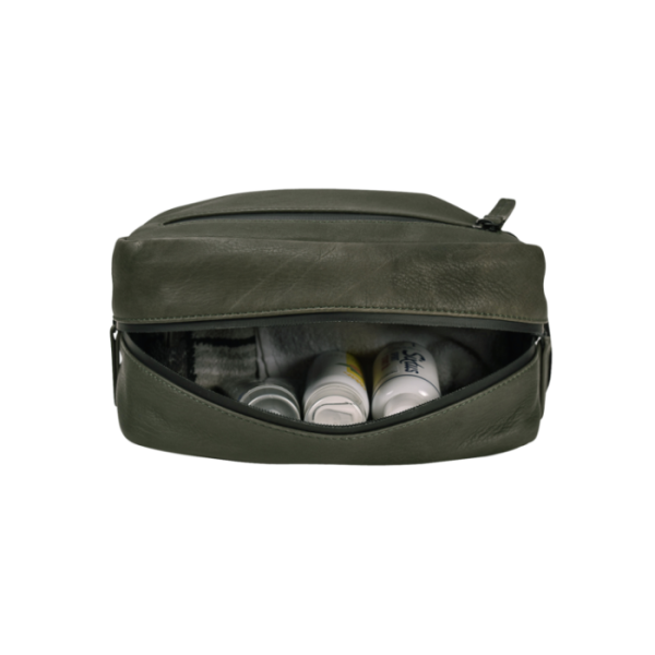 Ob für Wochenenden oder Geschäftsreisen, dieser elegante olivfarbene Kulturbeutel aus Vollrindleder ist Ihr idealer Begleiter. Er bietet Platz für Ihre wichtigsten Pflegeprodukte und lässt sich bequem in der Reisetasche verstauen. Ein großartiges und platzsparendes Feature!