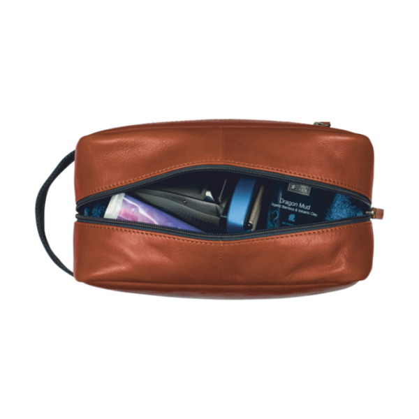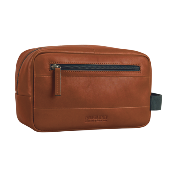 Ob für Wochenenden oder Geschäftsreisen, dieser elegante cognacfarbene Kulturbeutel aus hochwertigem Vollrindleder mit Öl-Wachs Finish ist Ihr idealer Begleiter. Er bietet Platz für Ihre wichtigsten Pflegeprodukte und lässt sich bequem in der Reisetasche verstauen. Ein großartiges und platzsparendes Feature!