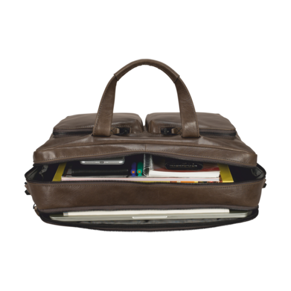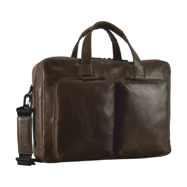 Diese hochwertige graubraune Ledermappe von Leonhard Heyden im modernen Business-Design bietet optimalen Schutz für Laptop und Tablet. Gefertigt aus echtem Vollrindleder mit robustem Öl-Wachs Finish und charakteristischem Pull-Up-Effekt. Die zwei separaten Hauptfächer gewährleisten übersichtliche Organisation und schnellen Zugriff auf Dokumente, Laptop und Arbeitsutensilien. Zusätzliche Außentaschen bieten praktischen Stauraum für weitere Unterlagen. Der integrierte Trolley Loop auf der Rückseite ermöglicht sicheren Transport auf Reisegepäck. Mit kurzen Tragegriffen und verstellbarem Schulterriemen ist diese vielseitige Ledermappe die ideale Begleitung für anspruchsvolle Geschäftsanforderungen.
