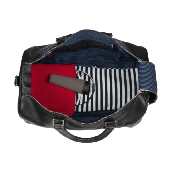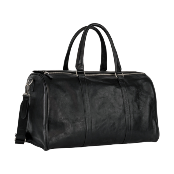 Die schicke Reisetasche eignet sich ideal als Weekender und bietet genügend Platz für das Gepäck eines Wochenendtrips. Ihr zeitlos elegantes Design wird durch das schwarze hochwertige Vollrindleder unterstrichen. Dank des abnehmbaren Tragegurtes kann die Tasche auch bequem über der Schulter getragen werden. So sind Sie immer stilvoll unterwegs.