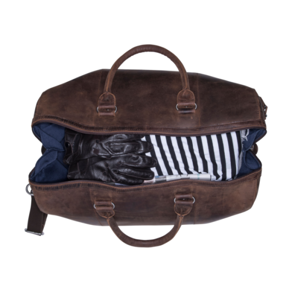 Die hochwertige Reisetasche eignet sich ideal als Weekender und bietet genügend Platz für das Gepäck eines Wochenendtrips. Ihr zeitlos elegantes Design wird durch das braune hochwertige Vollrindleder unterstrichen. Dank des abnehmbaren Tragegurtes kann die Tasche auch bequem über der Schulter getragen werden. So sind Sie immer stilvoll unterwegs.