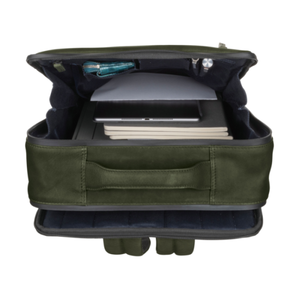 Der schicke Rucksack aus weichem Vollrindleder mit Nubuk-Touch ist perfekt für den täglichen Gebrauch. In den zwei separaten Innenfächern können Sie wichtige Dokumente ideal verstauen und in dem extra gepolsterten Laptopfach findet sogar ein Notebook Platz. In den zwei gesonderten Reißverschlussfächern auf der Vorderseite können Sie Arbeitsutensilien bequem unterbringen. Die beiden Schultergurte lassen sich individuell an die Größe anpassen und sorgen für ein angenehmes Tragegefühl. Der hochwertige Rucksack in Oliv komplettiert stilsicher Ihr Business- sowie Freizeitoutfit.