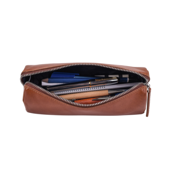 Eine elegante Stiftemappe aus hochwertigem Vollrindleder ist der perfekte Begleiter für die Arbeit oder die Uni. Das Etui bietet für zahlreiche Stifte und Schreibutensilien genug Platz und passt hervorragend in jede Hand- oder Aktentasche.